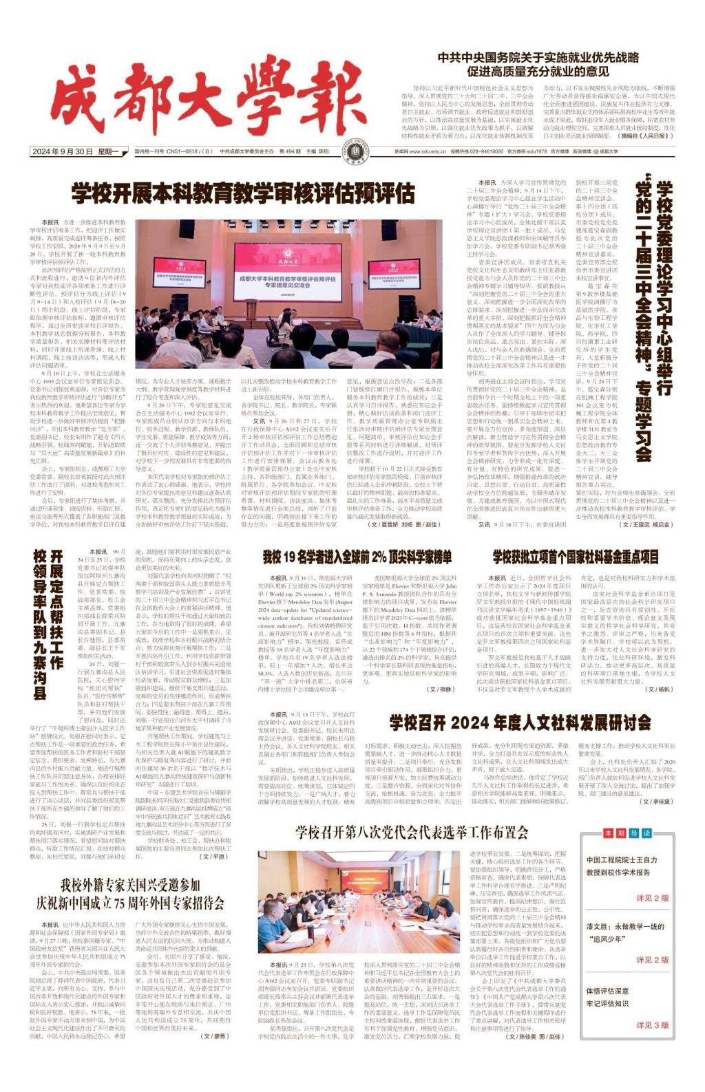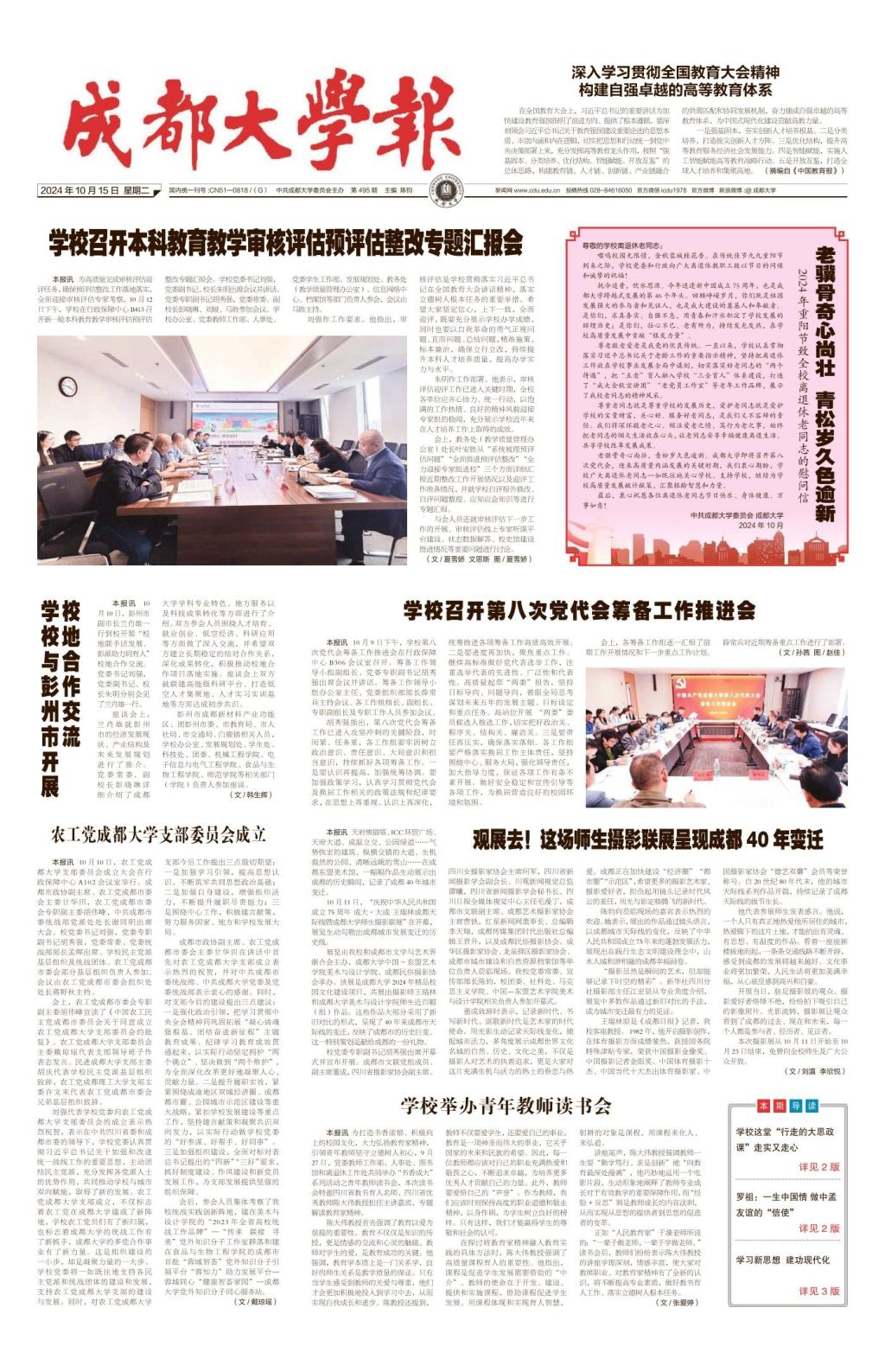 從苦難走向輝煌,從沉淪邁向復(fù)興。2025年9月3日,世界的目光再次聚焦中國(guó)。紀(jì)念中國(guó)人民抗日戰(zhàn)爭(zhēng)暨世界反法西斯戰(zhàn)爭(zhēng)勝利80周年大會(huì)在天安門廣場(chǎng)隆重舉行。當(dāng)雄壯的國(guó)歌響起,當(dāng)威武的方隊(duì)浩蕩行進(jìn),勝利的榮光、歷史的回響、未來(lái)的希望,激蕩在中華大地上,激蕩在億萬(wàn)人民心中。正值暑假尾聲,成都大學(xué)師生星散在世界各地,無(wú)論身在城市還是鄉(xiāng)村,校內(nèi)還是校外,此刻都齊齊守候在屏幕前收看紀(jì)念大會(huì)直播。在校校領(lǐng)導(dǎo)、黨委常委在行政保障中心B413會(huì)議室收看紀(jì)念大會(huì)直播。學(xué)校各部門、學(xué)院也組織在校師生員...