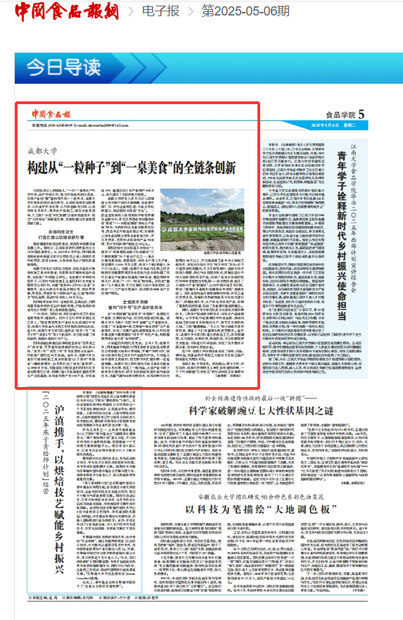【中國食品報】成都大學(xué): 構(gòu)建從“一粒種子”到“一桌美食”的全鏈條創(chuàng)新
