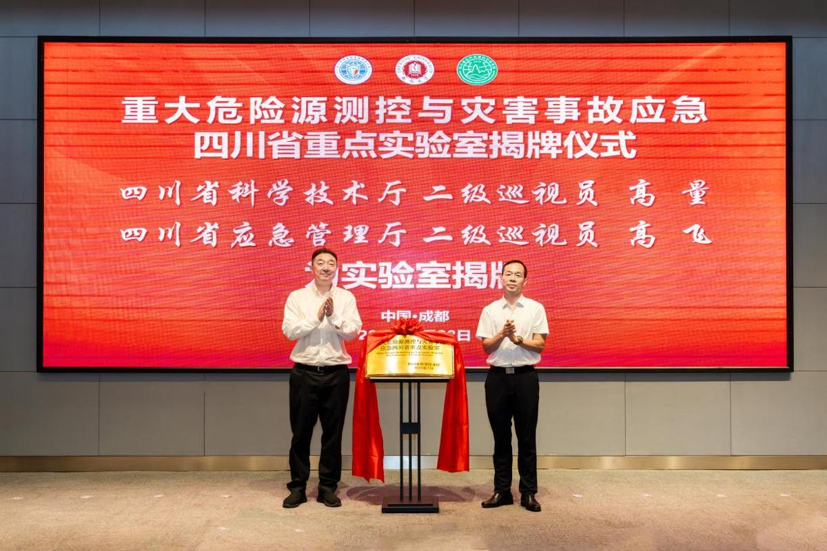 重大危險源測控與災害事故應急四川省重點實驗室”是經四川省科技廳批準,在原“重大危險源測控四川省重點實驗室”基礎上重整而成,由四川省安全科學技術研究院、成都大學、四川省自然資源科學研究院三方共同建設。高量和高飛共同為實驗室揭牌。
