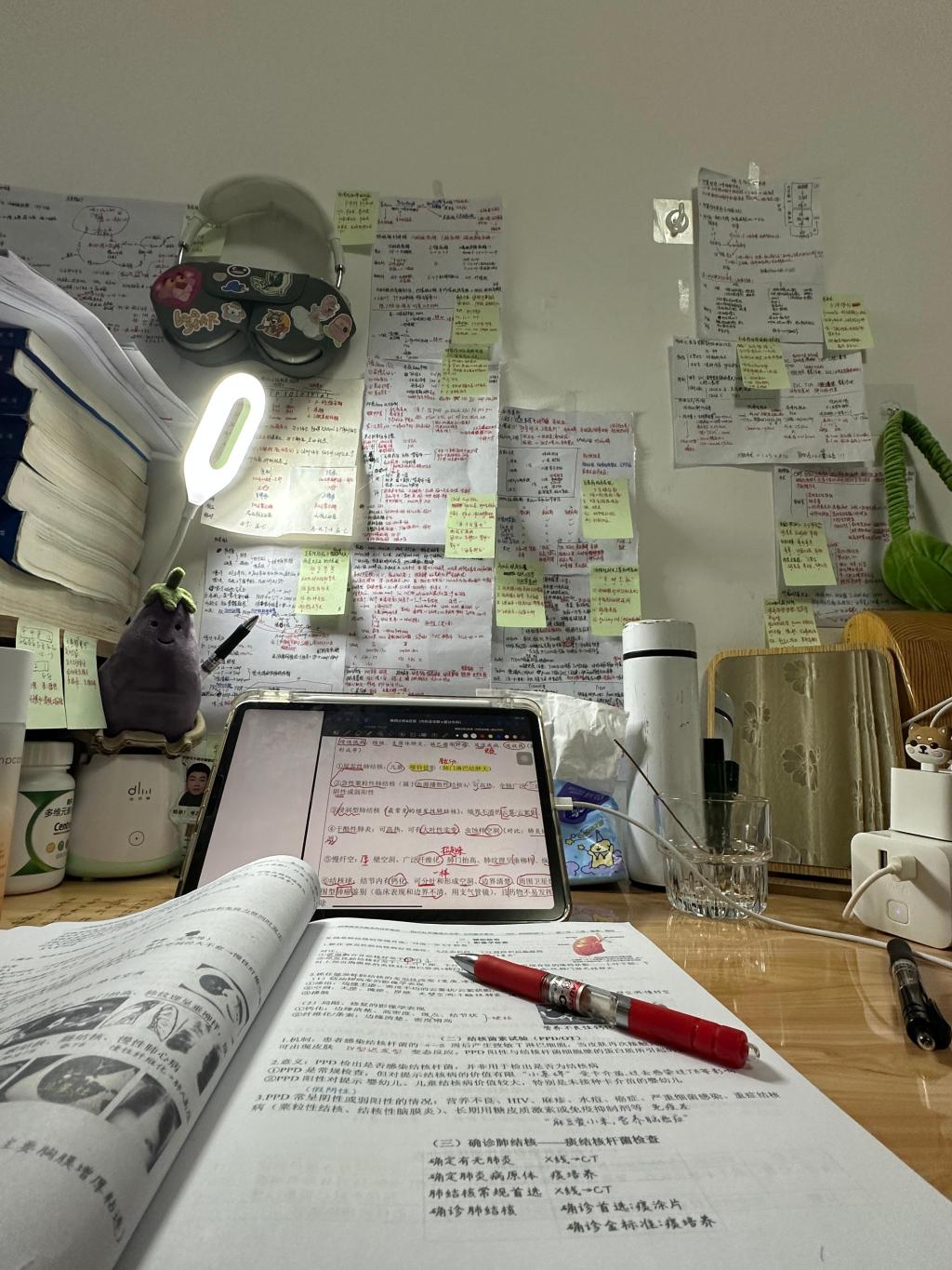 滾動復習時,我會把A4紙對半裁開,用來默寫知識點的內容,能寫多少是多少,像生化代謝的流程圖、不同疾病的鑒別要點、某個疾病的分類標準等,可以通過代謝圖、表格和思維導圖的模式來解決。寫完后核對,把寫錯的和不熟悉的用其他顏色的筆標注出來,把改好的紙用夾子夾起來或者貼在墻上,隨時看隨時記憶。